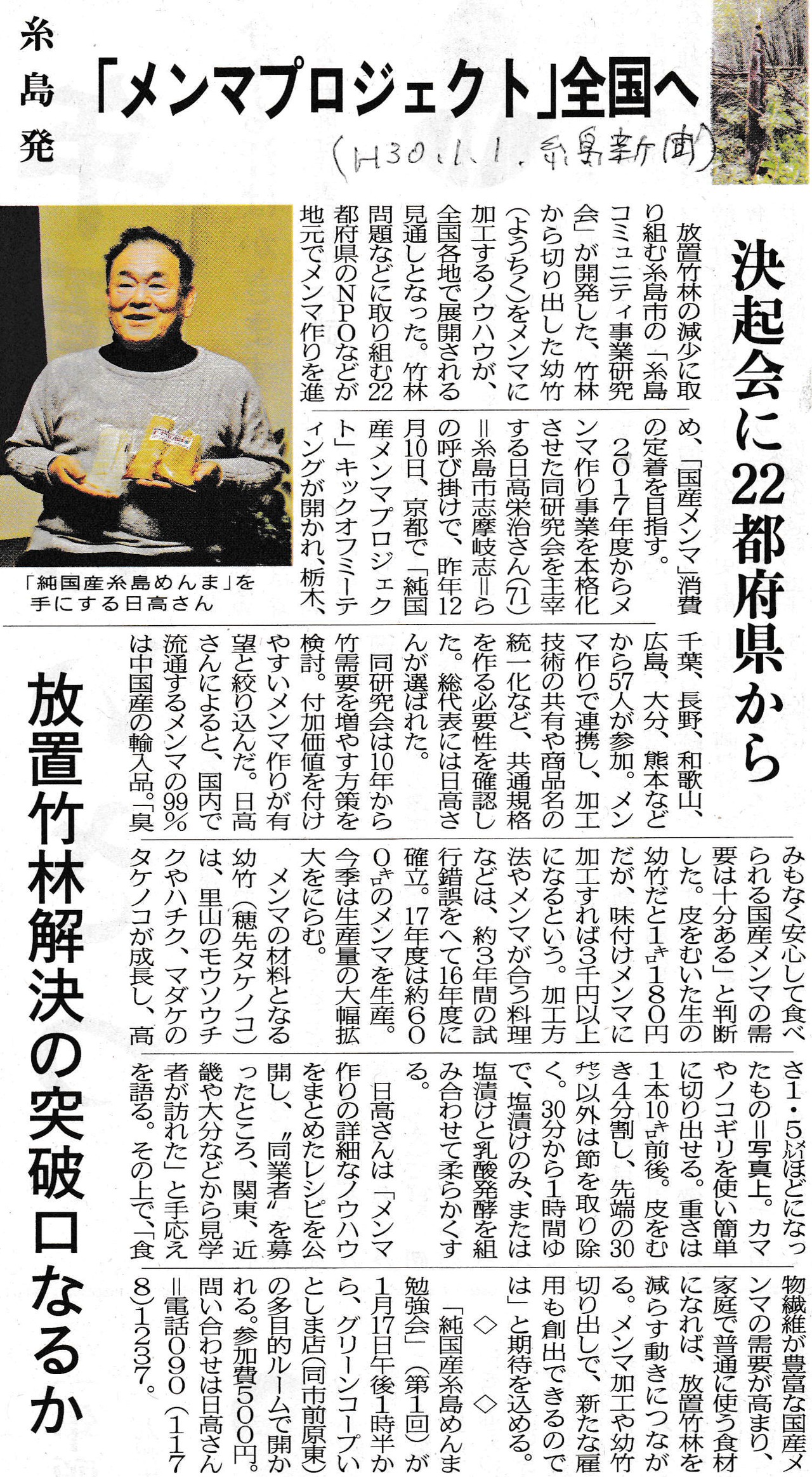 国内産竹を使い国内で加工した美味追求純国産糸島めんまが誕生致しました。